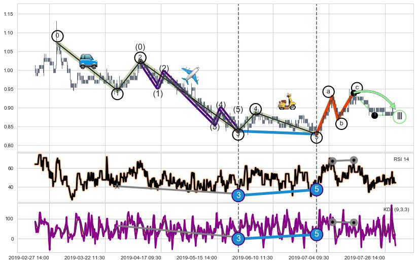 ➣ a,c调整浪RSI走势未出现明显背离