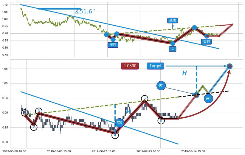 ➣ 最小反转涨幅→𝐇: 0.0978950 (头部与颈线垂直距离)