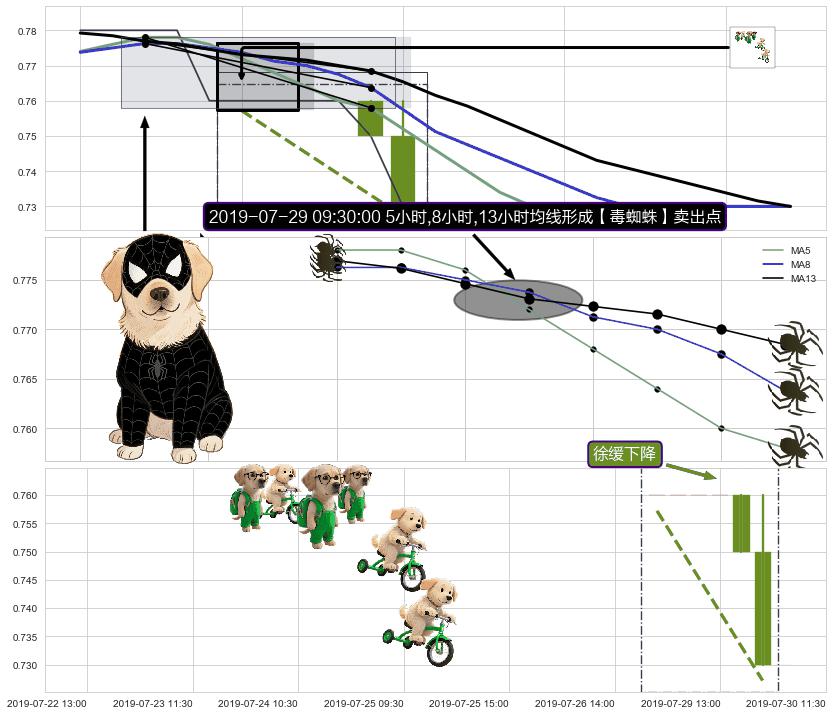 从2019-07-08 13:00至2019-07-10 14:00,共包含14个小时,阶段股价下跌-1.35%,阶段股价变动位移路程比: 1 : 7