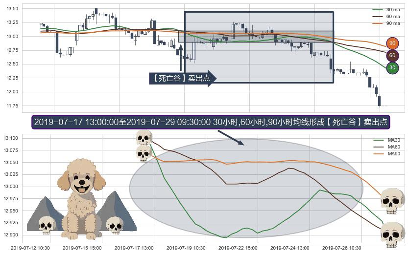 ⚀ 2019-07-17 14:00:00-小时至2019-07-29 09:30:00-小时显现 30小时-60小时-90小时均线 【死亡谷】卖出点 看空信号,后市看跌,卖出