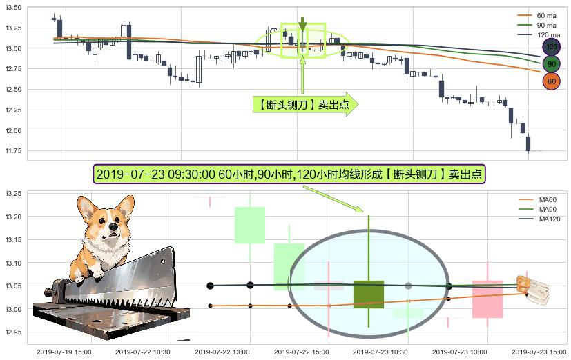 ⚀ 2019-07-23 09:30:00小时显现 60小时-90小时-120小时均线 【断头铡刀】卖出点 看空信号,后市看跌,卖出