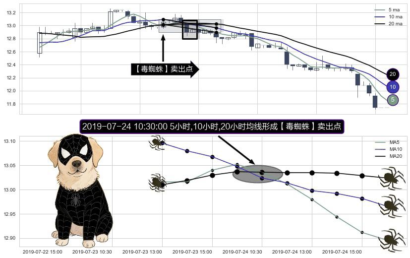 ⚀ 2019-07-24 10:30:00小时显现 5小时-10小时-20小时均线 【毒蜘蛛】卖出点 看空信号,后市看跌,卖出