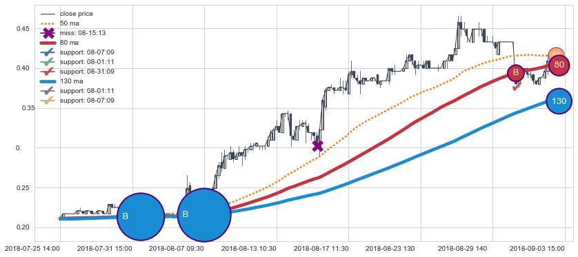 上涨趋势07-25 14:00-09-03 15:00,均线80, 130确认关键支撑3处