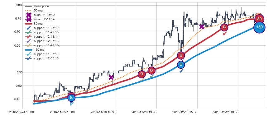 上涨趋势10-24 13:00-12-31 09:30,均线80, 130确认关键支撑5处
