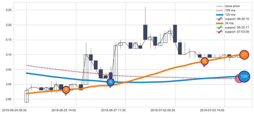 上涨趋势06-24 09:30-07-04 10:30,均线120, 34确认关键支撑3处