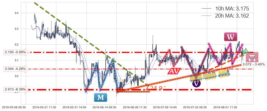 ➣ 预测:2019-09-03 10:00,【小幅回撤】稳定目前上涨趋势的前提下,预测价格:3.177