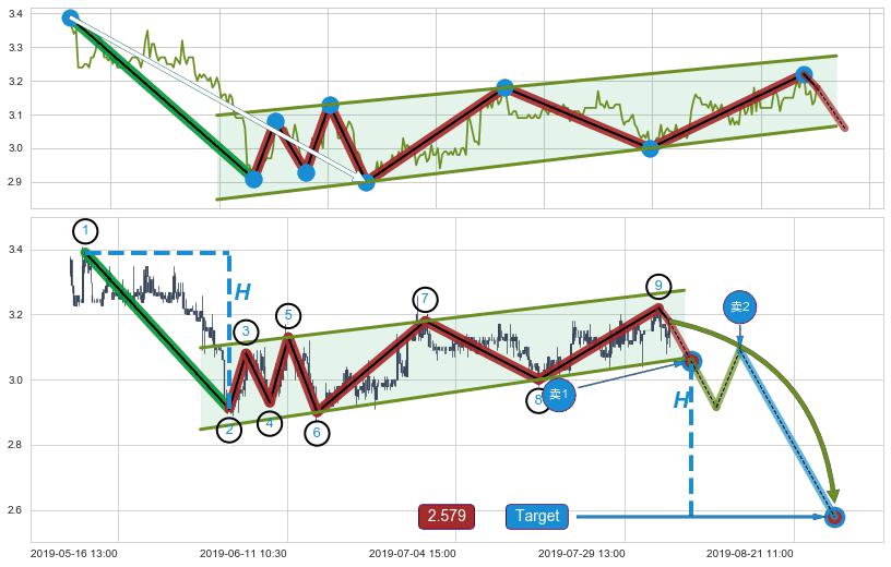 ➣ D点拟合预测价格3.252,距离最后交易收盘价格3.180相差 +2.25%