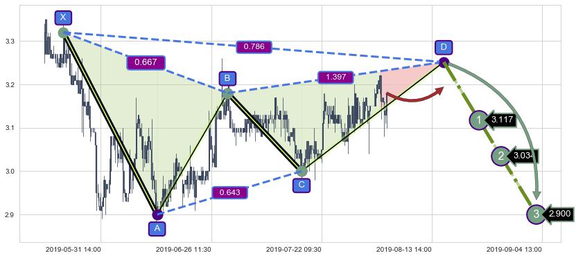 ➢ 接近预测D点位置, 随时警戒看跌【伽利】形态反转启动