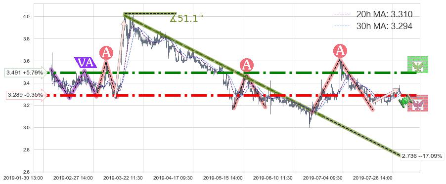 ⚔️ 2019-03-14 10:30-2019-06-24 10:30下跌趋势存在反转上涨[机会],其原下跌趋势的阻力位(2.736)已被突破[强支撑信号],原下跌趋势角度: 51.1˚