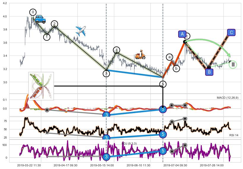 ➢ a,c调整浪MACD, RSI, KDJ走势都【未出现】背离,abc走势延续, 5浪反转概率增强