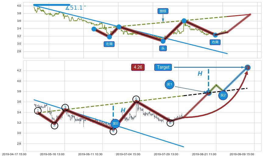 ➣ 最小反转涨幅→𝐇: 0.48809 (头部与颈线垂直距离)