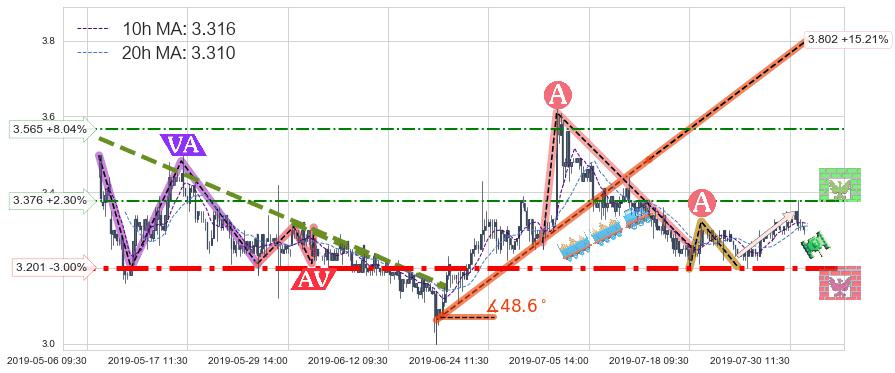 ♘ 阻力价格位3.376,可信任强度54.32%,距离最后交易2019-07-31 15:00形成的收盘价格3.300相差 +2.30%