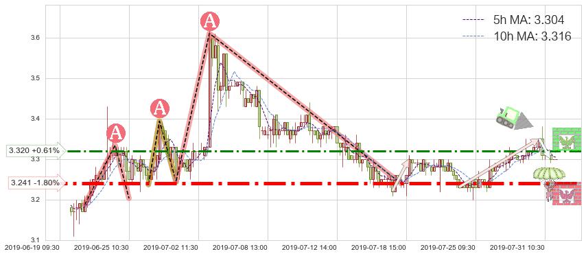 ♘ 阻力价格位3.320,可信任强度69.30%,距离最后交易2019-07-31 15:00形成的收盘价格3.300相差 +0.61%