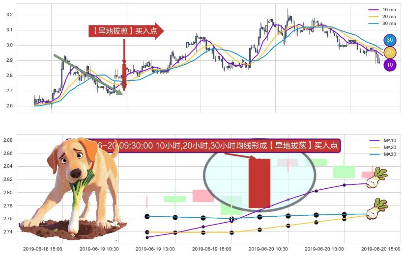 形态多维评估: ⚀ 2019-06-20 09:30:00小时显现 10小时-20小时-30小时均线 【旱地拔葱】买入点 看多信号,后市看涨,买入