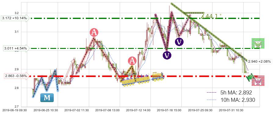 ➢ 预测:2019-08-01 11:00,【后劲十足】稳定目前下跌趋势的前提下,预测价格:2.866