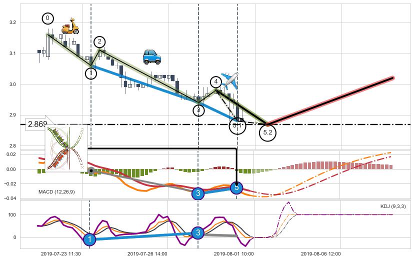 ➣ 5.1: 预测当前第5浪位置(07-31:11, 2.880),仍然有下跌空间