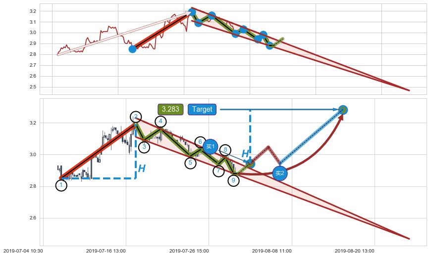 ➢ 最小中继整理涨幅→𝐇: 0.34000 (𝐇楔型旗杆的长度:楔型起点→顶点)