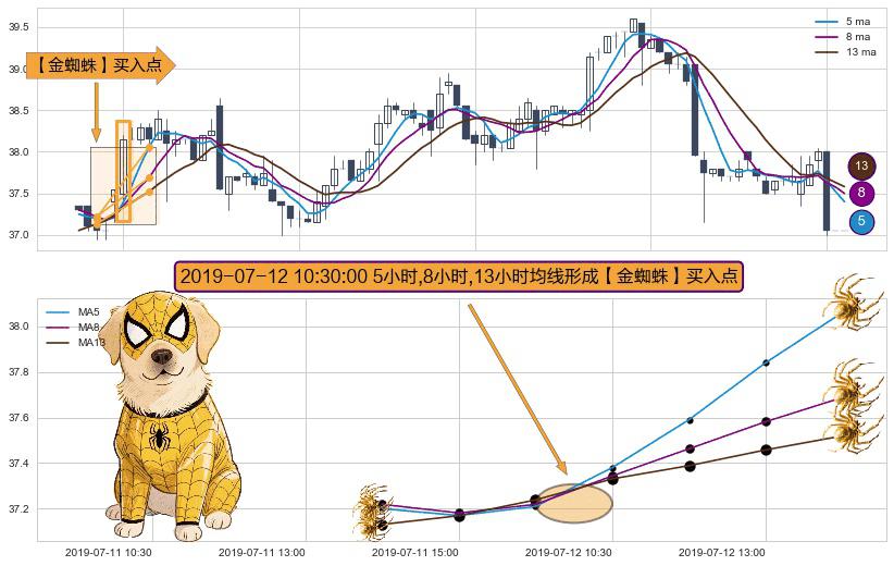 ⚀ 2019-07-12 10:30:00小时显现 5小时-8小时-13小时均线 【金蜘蛛】买入点 看多信号,后市看涨,买入