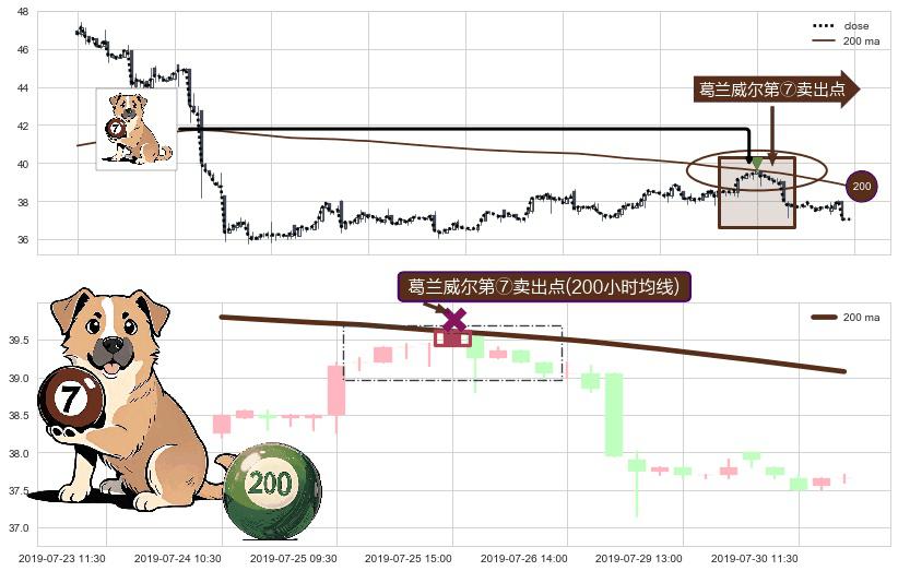 ⚀ 2019-07-25 15:00:00-小时显现 葛兰威尔均线 200小时均线 第⑦卖出点 下降趋势的中继信号,后市看跌,卖出信号