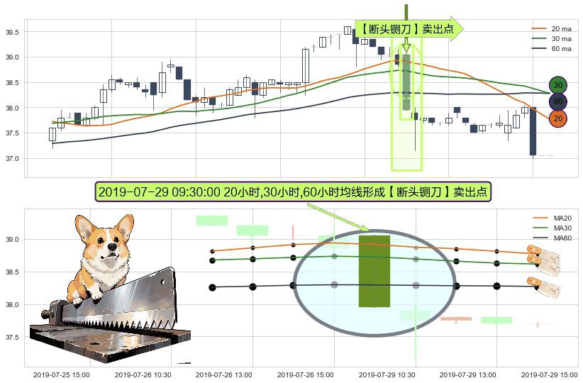 ⚀ 2019-07-29 09:30:00小时显现 20小时-30小时-60小时均线 【断头铡刀】卖出点 看空信号,后市看跌,卖出