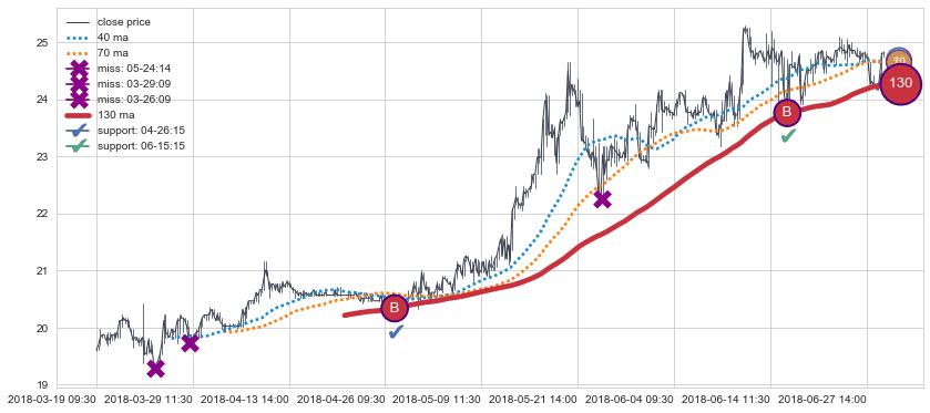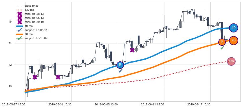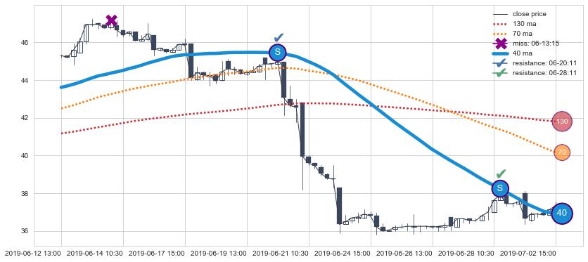 ⚃ 在破位点附近ma走势明显平稳迹象,稍后的走势中ma下垂迹象也出现,信号【可信度中等偏上】