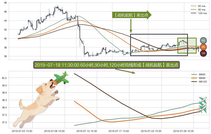 ⚀ 2019-07-09 15:00:00小时-2019-07-26 15:00:00小时显现 60小时-90小时-120小时均线 【战机起航】卖出点 看空信号,后市看跌,卖出