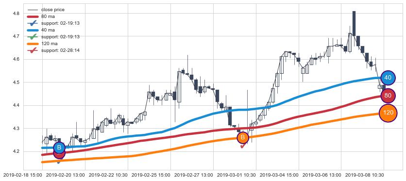 上涨趋势02-14 11:30-03-08 10:30,均线80, 40, 120确认关键支撑2处