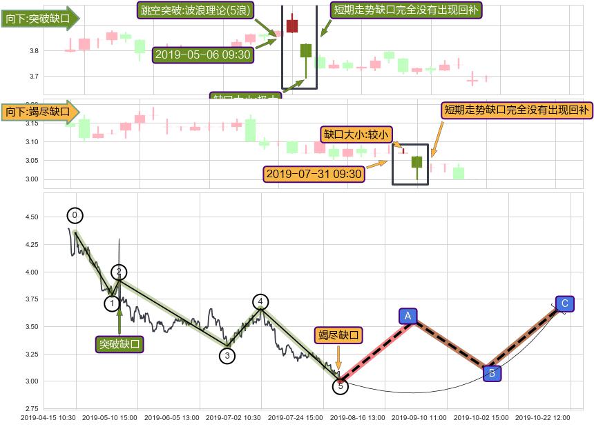 ➢ 2019-07-31 09:30形成:向下跳空【竭尽】缺口