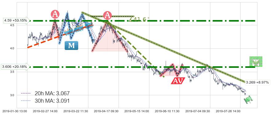 ♘ 阻力价格位3.606,可信任强度87.15%,距离最后交易2019-07-31 15:00形成的收盘价格3.000相差 +20.18%