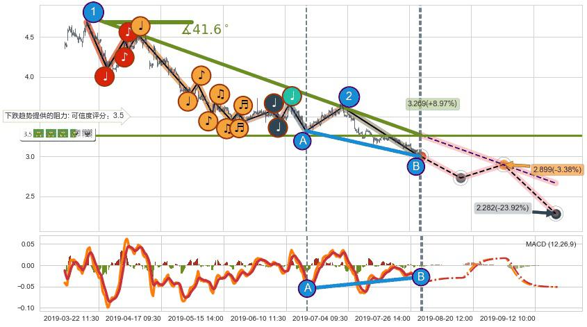 ➣ 预测:2019-09-02 10:00,【试探阻力】稳定目前下跌趋势的前提下,预测价格:2.899