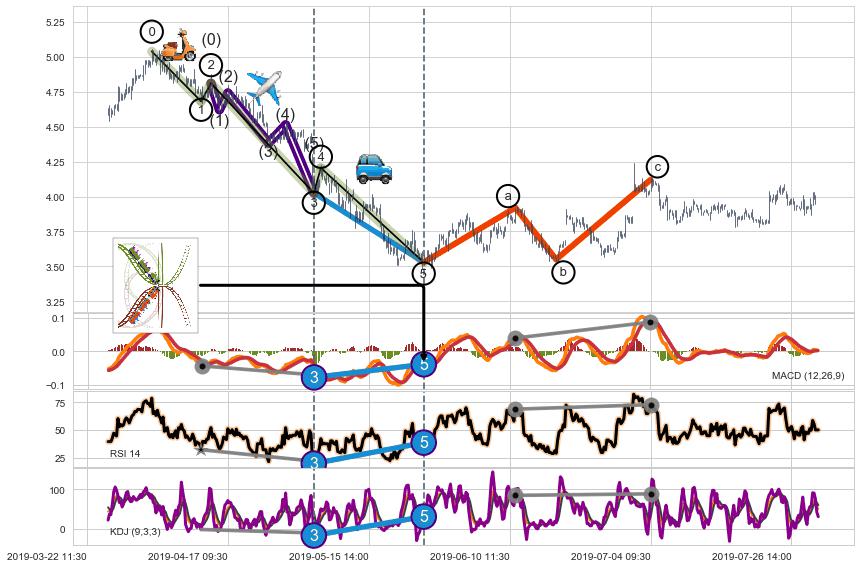 ➢ a,c调整浪MACD, RSI, KDJ走势都【未出现】背离,abc走势延续, 5浪反转概率增强