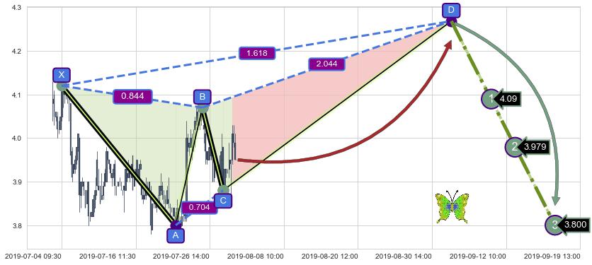 ➣ 未完成【蝴蝶】形态起点X: 07-04:09, 已到达C点: 07-30:10, 预测最终D点: 09-03:15, 共260交易小时