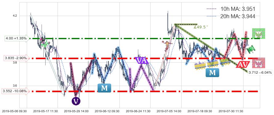 ♘ 支撑价格位3.835,可信任强度95.19%,距离最后交易2019-07-31 15:00形成的收盘价格3.950相差 -2.90%