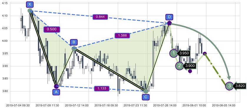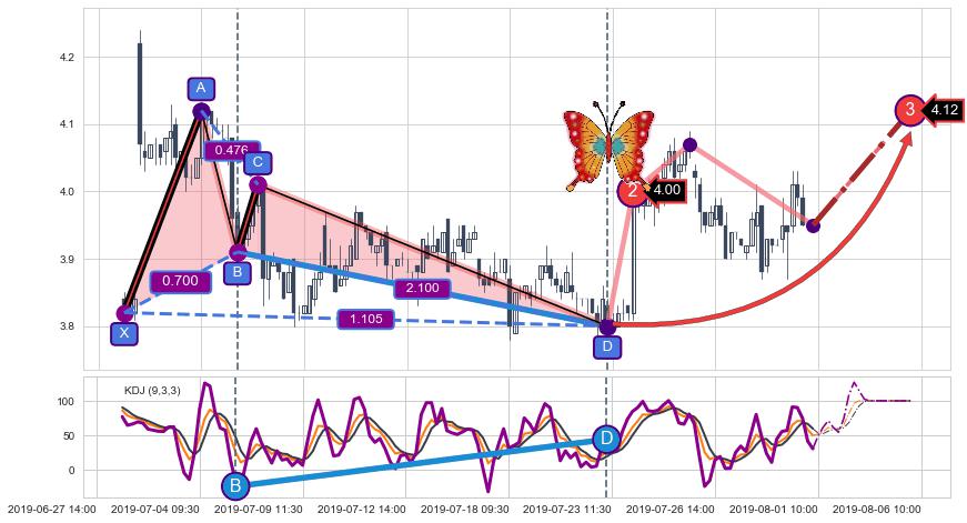 ➣ 已完成【蝴蝶】形态起点X: 06-28:13, 终点D: 07-23:10, 共95交易小时