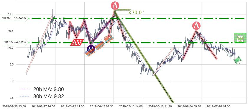 ♞ 20小时均线:9.80,30小时均线:9.82→ 快线<慢线