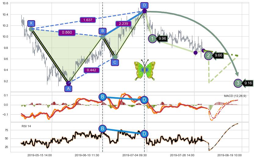 ➣ 已完成【蝴蝶】形态起点X: 05-03:13, 终点D: 07-03:10, 共239交易小时