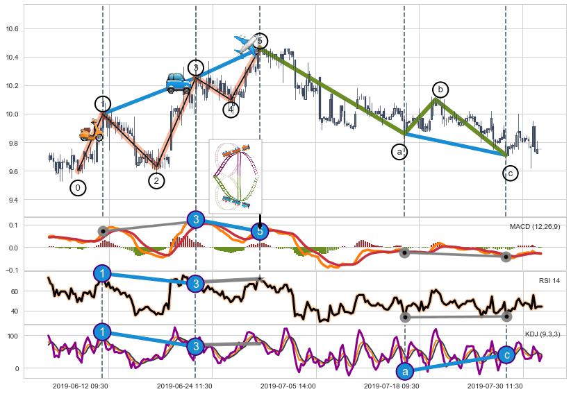 ➣ 1,3,5驱动浪MACD, RSI, KDJ走势都出现【常规背离】反转信号增强