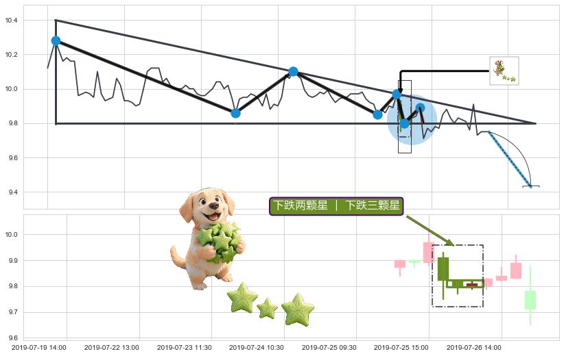 | 2 🅚:下降插入线(坠落线) ➕ 📐:下降三角整理下行突破支撑位破位, 猜想持续下沉下跌,被突破的支撑位已变为阻力位 ☞ 看空信号 ⇥ 【🅚线】交织【图形】⇥ 综合量化分数: 49 | > |