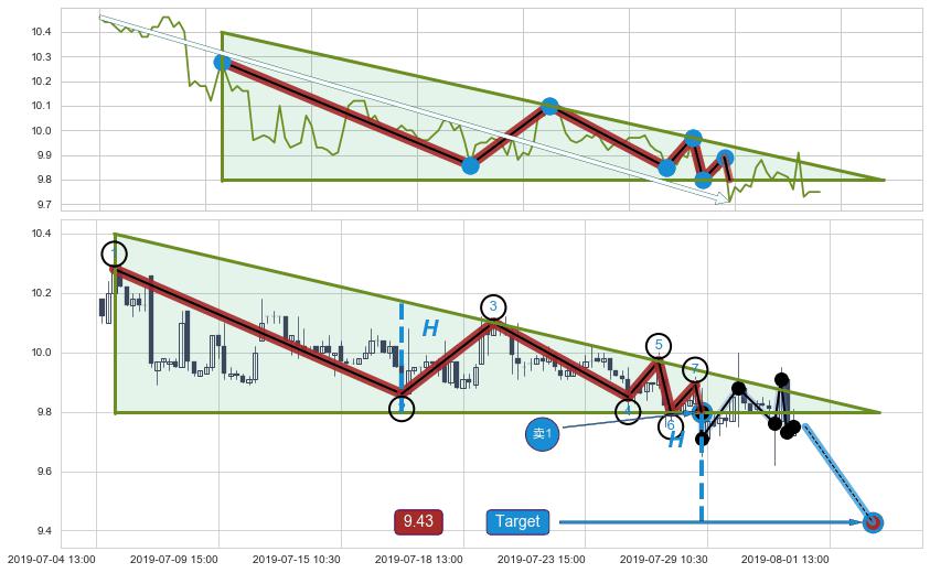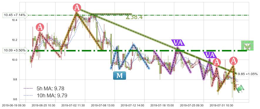 ➣ 预测:2019-08-06 15:00,【试探阻力】稳定目前下跌趋势的前提下,预测价格:9.73