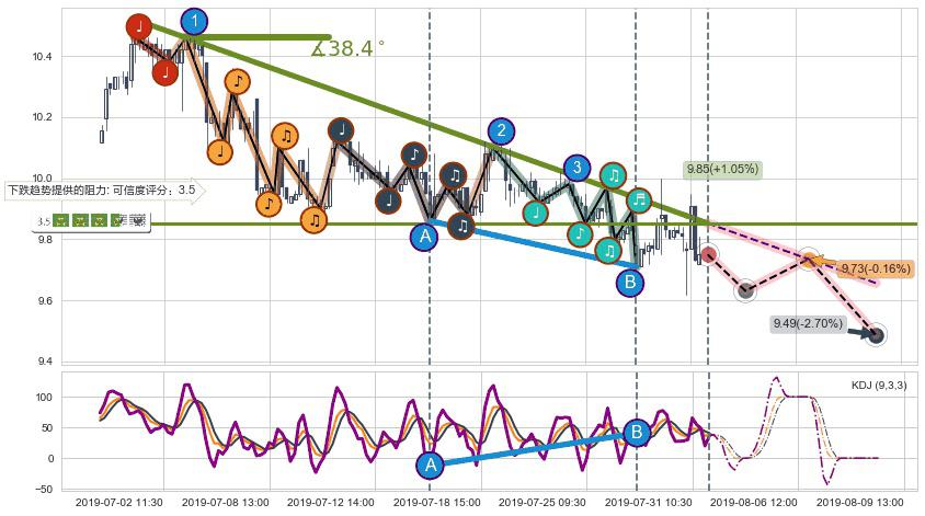 ➢ 预测:2019-08-09 13:00,【继续下探】稳定目前下跌趋势的前提下,预测价格:9.49
