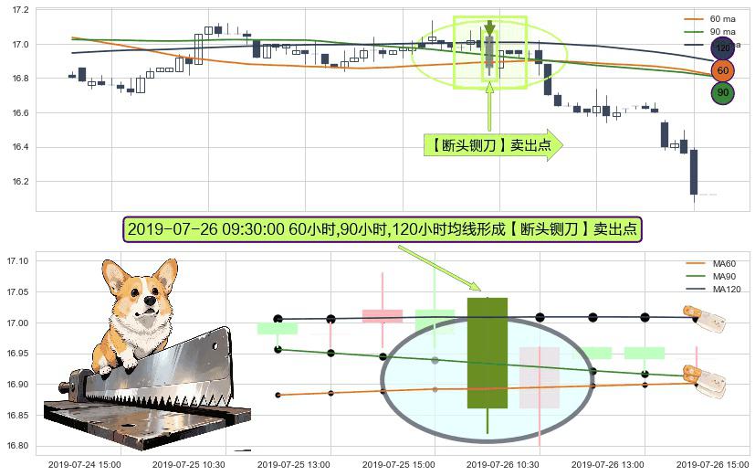 形态多维评估: ⚀ 2019-07-26 09:30:00小时显现 60小时-90小时-120小时均线 【断头铡刀】卖出点 看空信号,后市看跌,卖出