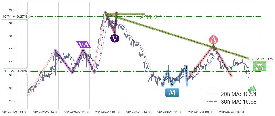 ♘ 阻力价格位16.65,可信任强度70.57%,距离最后交易2019-07-31 15:00形成的收盘价格16.12相差 +3.30%