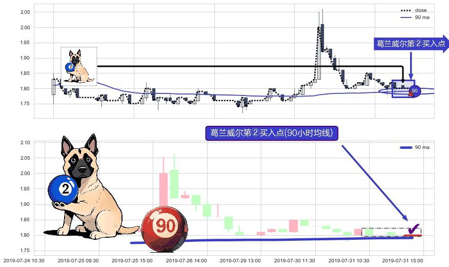 ⚀ 2019-07-31 15:00:00-小时显现 葛兰威尔均线 90小时均线 第②买入点 上升趋势的中继信号,后市看涨,买进信号
