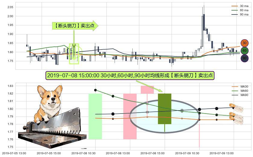 ⚀ 2019-07-08 15:00:00小时显现 30小时-60小时-90小时均线 【断头铡刀】卖出点 看空信号,后市看跌,卖出