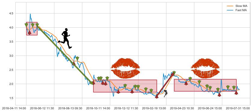 03-07 13:00至07-25 10:30 慢线与快线多次接触,存在上下穿越,有缠绕