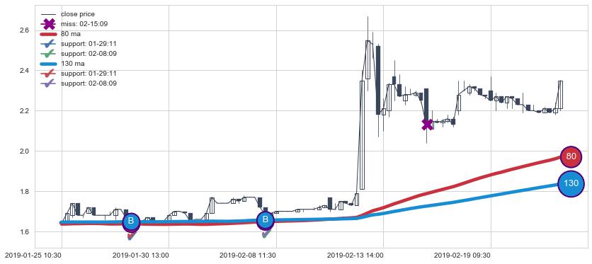 ⚄ 价格在均线获取支撑后再次向上反弹了【极短】距离, 第②买入点 支撑效果【等待验证】