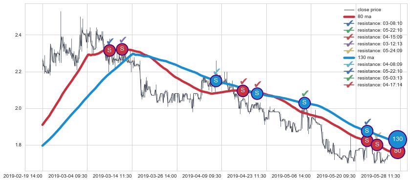 ➢ 最优均线组合共正确确认支撑阻力信号10处,正确确认率 62.50%