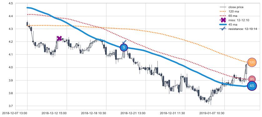 1. 45小时均线确认关键阻力: 12-19 14:00