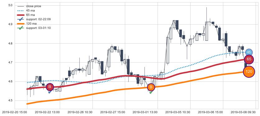 上涨趋势02-20 15:00-03-08 09:30,均线120, 65确认关键支撑2处