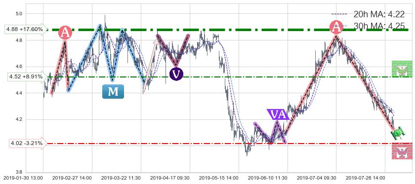 ♘ 阻力价格位4.52,可信任强度51.16%,距离最后交易2019-07-31 15:00形成的收盘价格4.15相差 +8.91%